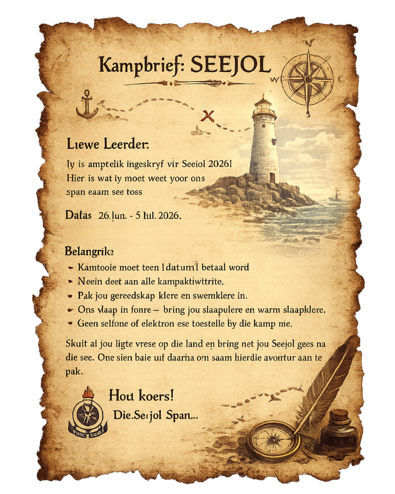 Plekke is beperk en gewild — maak seker jy skryf betyds in en begin jou Seejol-avontuur vandag.